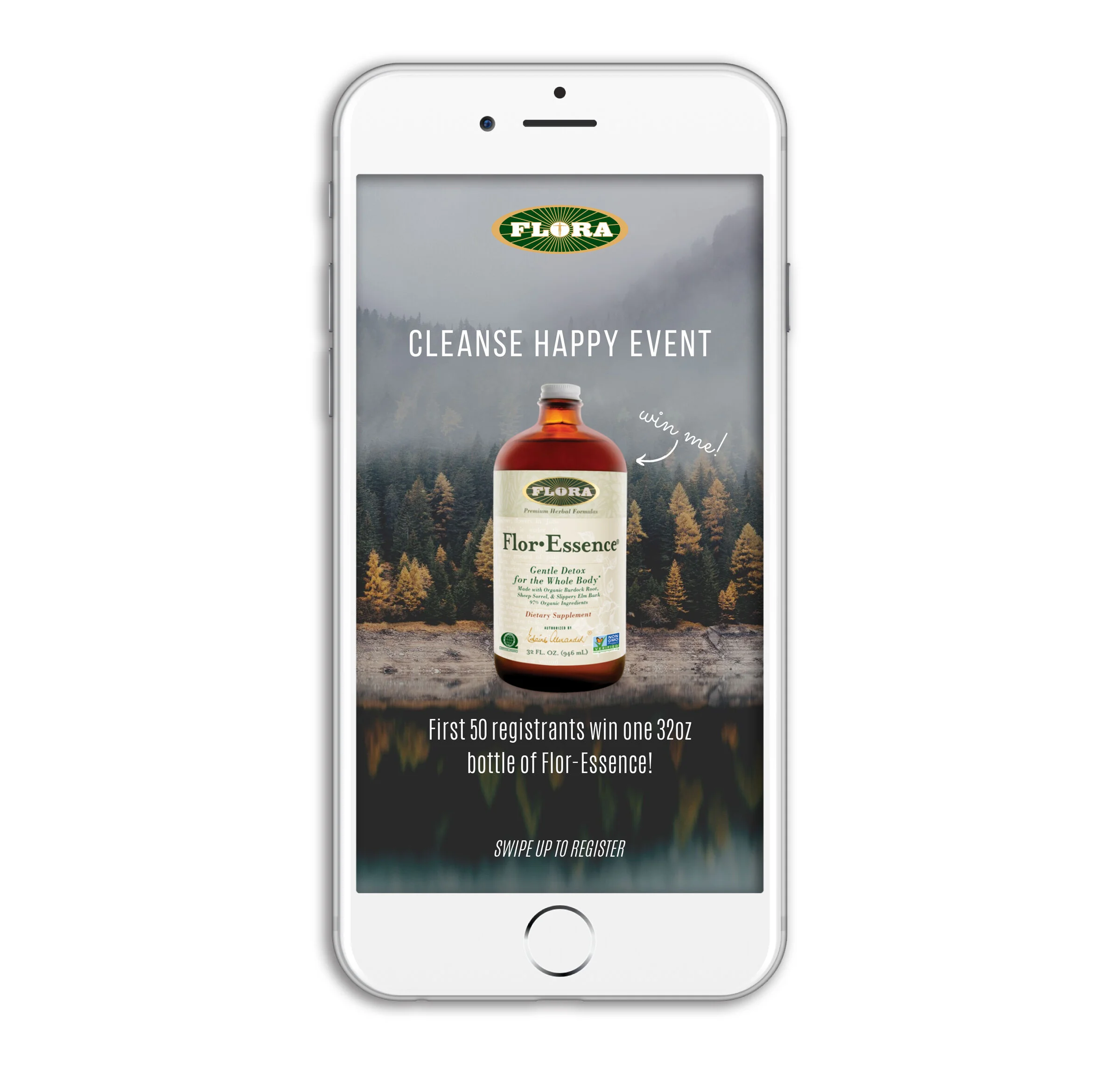 For the “Cleanse Happy” event I created a mix of static and interactive social posts and stories to keep things fun and keep our audience engaged, especially for the giveaway. To entice people to join the event, Flora gave away 50 bottles of Flor•Essence® to the first 50 people that signed up for the event.